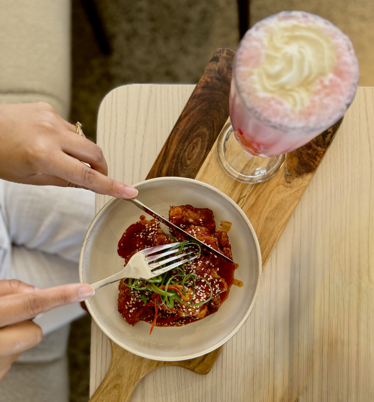 Our cozy café is surrounded by lush greenery and modern amenities, making it the perfect spot to relax and enjoy a delicious meal or coffee.